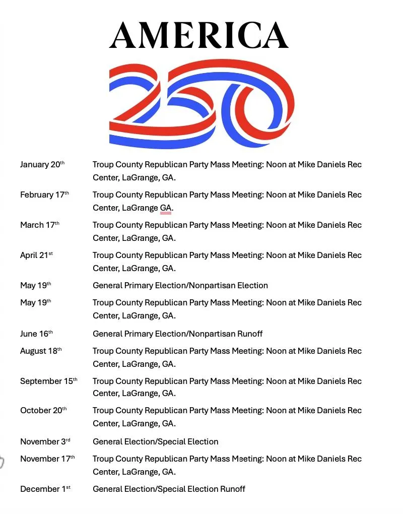 The Troup County Republican Party is committed to educating our members on the issues important to our community and electing Republican candidates in all branches of our government.
